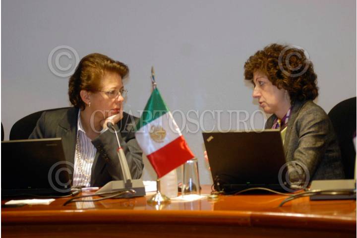 MÉXICO, D.F., 07JULIO2010.- La comisionada presidenta Jacqueline Peschard platica con la comisionada María Marván durante la sesión pública, un día después de la entrada en vigor de la Ley Federal de Protección de Datos Personales en Posesión de los Particulares, dentro de las nuevas responsabilidades que tendrá el IFAI. Por lo tanto ahora se denomina Instituto Federal de Acceso a la Información y Protección de Datos Personales, y el acrónimo seguirá siendo IFAI. FOTO: IFAI/CUARTOSCURO.COM