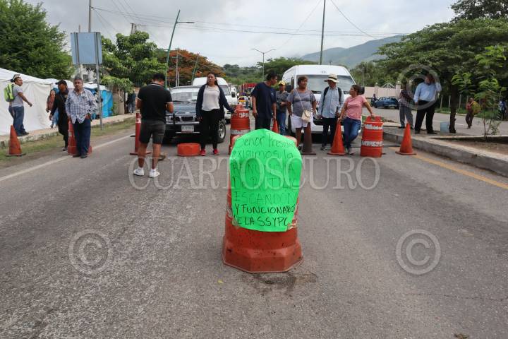 Familiares de de los 16 trabajadores de la Secretaría de Seguridad plagiados, bloquean en el kilómetro 11 + 200 carretera de Tuxtla Gutiérrez a Chiapas de Corzo. Le exigen al Gobierno que agilice la búsqueda y rescate de las personas. Hoy a las 4 de la tarde se cumple 2 días del secuestro de los trabajadores.