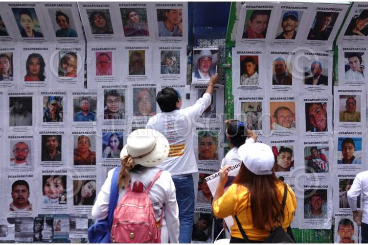 CIUDAD DE MÉXICO, 30AGOSTO2025.- Colectivos de familiares de desaparecidos realizaron una pega masiva de fichas de búsqueda y los rostros de sus seres queridos alrededor de la Glorieta de las y los Desaparecidos, como protesta por la falta de justicia y atención de las autoridades para encontrarles. Lo anterior, en el marco del Día Internacional de las Víctimas de Desapariciones Forzadas. FOTO: GALO CAÑAS/CUARTOSCURO.COM