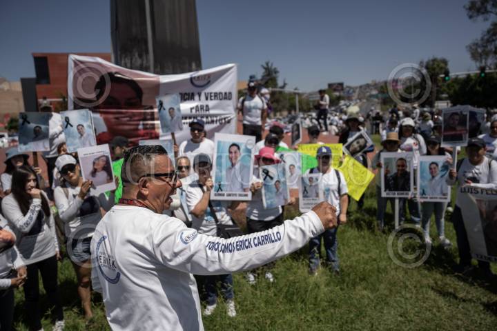 TIJUANA BAJA CALIFORNIA 30AGOSTO2025.- En conmemoración al Día Internacional de los Desaparecidos, colectivos de búsqueda realizaron una marcha pacífica en Zona Río para exigir "Justicia y Verdad", por sus familiares desaparecidos. La marcha dio inicio a la altura de la Glorieta Cuauhtémoc con dirección a la Glorieta de las Tijeras, con cartulinas, fotografías de sus familiares, consignas y fichas de búsqueda alzaron la voz para exigir a las autoridades resultados. Posteriormente regresaron a la Glorieta Cuauhtémoc, en donde colocaron una galería con las fotografías de sus familiares para conmemorarlos. FOTO OMAR MARTÍNEZ/ CUARTOSCURO.COM