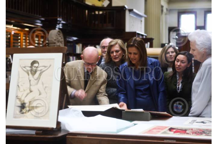 LONDRES, INGLATERRA, 30MARZO2009.-Margarita Zavala, esposa del presidente de México, Felipe Calderón Hinojosa, realizó un recorrido al Brithsh Museum. Donde se encuentra la obra gráfica mexicana, perteneciente a la colección del Museo de la Revolution On Paper. FOTO: IMPERIO RESENDIZ/CUARTOSCURO.COM