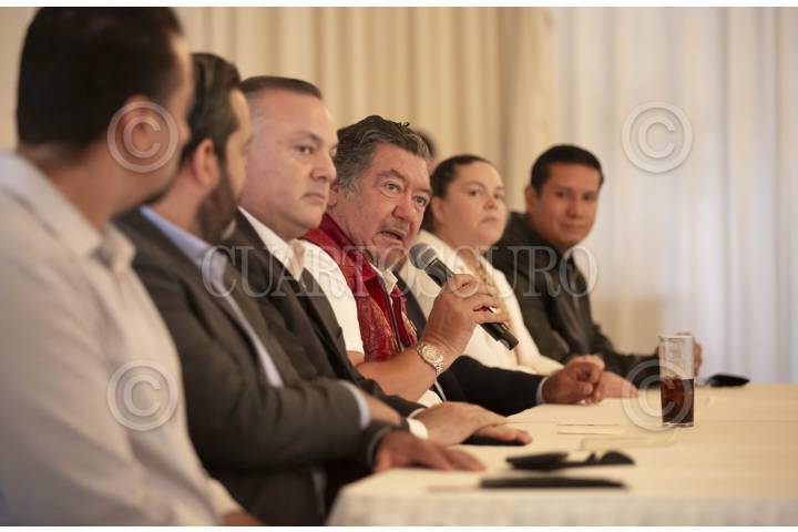 Hugo Eric Flores (PES), Gerardo Islas Fuerza México y Fernando González (RSP), en conferencia de prensa esta mañana.