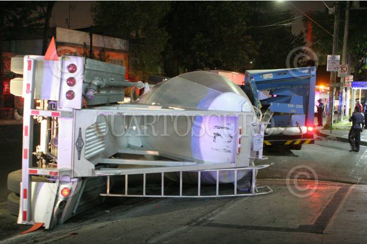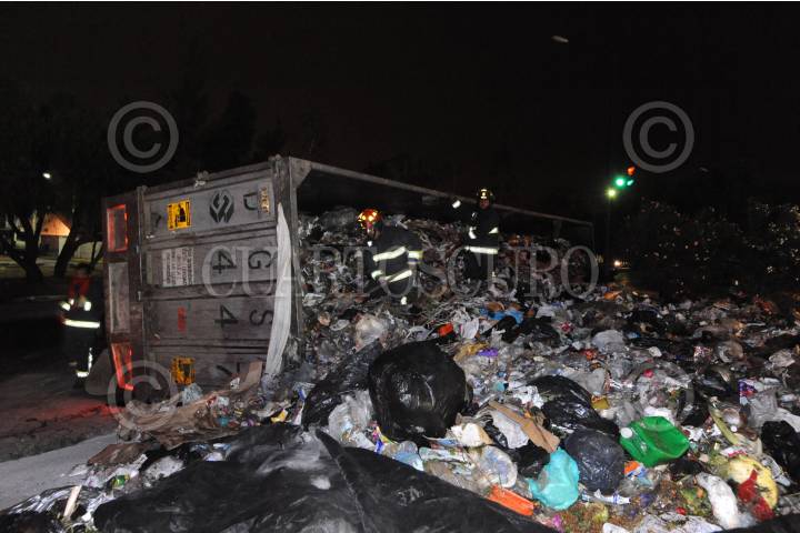 MÉXICO, D.F., 05ENERO2010.- Esta madrugada se registró una volcadura de un trailer que transportaba varias toneladas de basura en Av. Texcoco y calle Poniente 9 col. Cuchilla del Tesoro. FOTO: LUZ ACEVEDO/CUARTOSCURO.COM