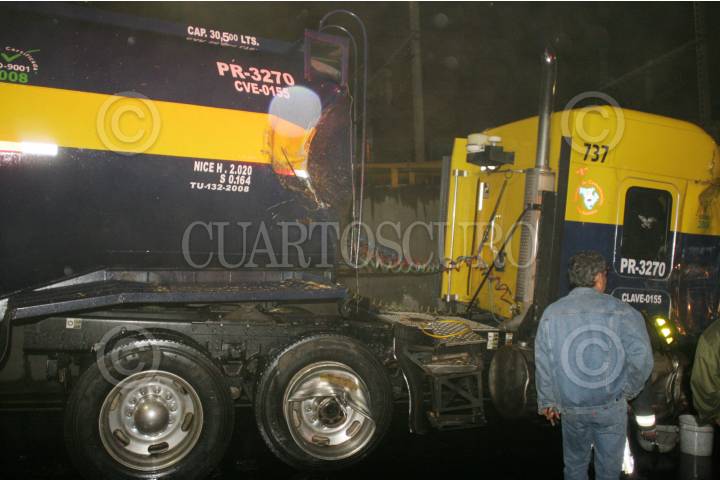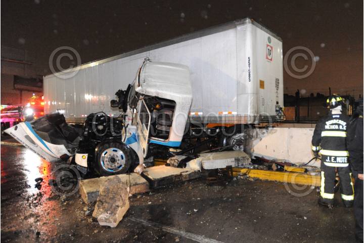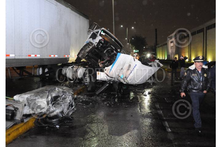 MÉXICO, D.F., 08ENERO2010.- Un trailer se estrelló esta madrugada en el muro de contención de Circuito Interior a la altura del eje 3 Oriente Eduardo Molina. FOTO: LUZ ACEVEDO7CUARTOSCURO.COM
