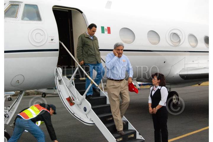 MÉXICO D.F., 30ENERO2009.- El Secretario de la SAGRAPA, Alberto Cardenas, a su llegada al hangar de la SAGARPA donde se iba a realizar una firma de trabajo entre la SAGARPA y la Cámara Nacional de la Industria Pesquera y Acuícola (Canaipesca). FOTO: SAÚL LÓPEZ/CUARTOSCURO.COM