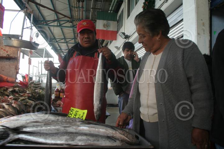 MÉXICO, D.F., 14ENERO2009.- En el mercado La Viga, las actividades diarias transcurren con normalidad ya que no se ven afectados por el paro pesquero que se vive en las costas del país, "En el mercado no habrá desabasto ni alza de precios". Dicho mensaje lo anuncio en conferencia de prensa, Jorge Toral Peña, Presidente del Consejo de Administración del Condominio La Nueva Viga S.C. FOTO: ENRIQUE ORDÓÑEZ/CUARTOSCURO.COM