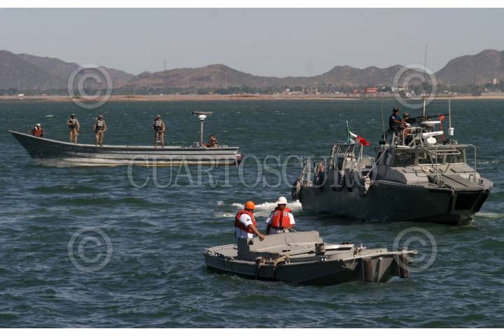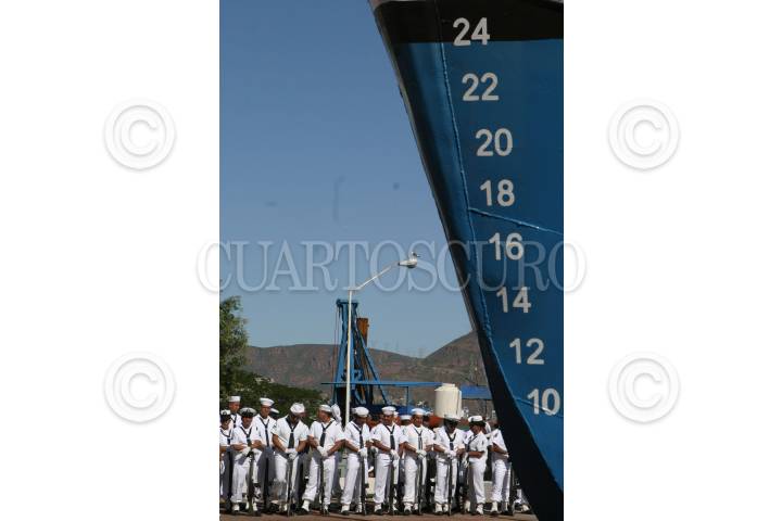 GUAYMAS, SONORA 29OCTUBRE2009.- Efectivos de la Armada de México vigilaron el acto oficial de la botadura del buque de investigación pesquera construído por la Secretaría de marina en coordinación con la SAGARPA y CONAPESCA. FOTO: IVÁN STEPHENS/CUARTOSCURO.COM