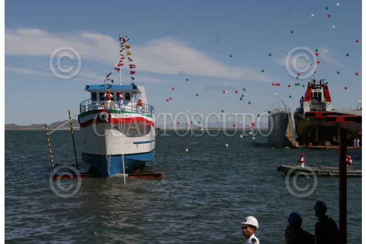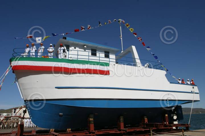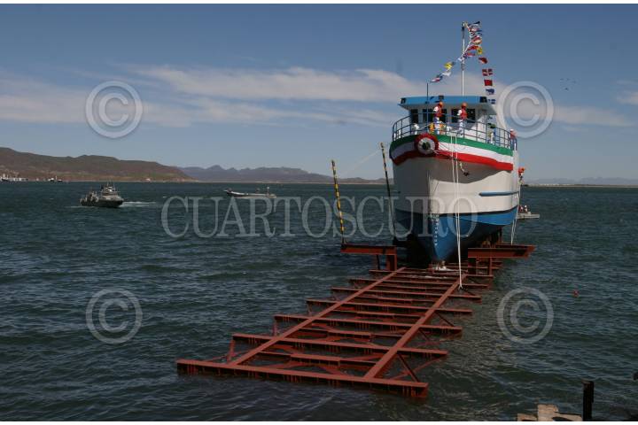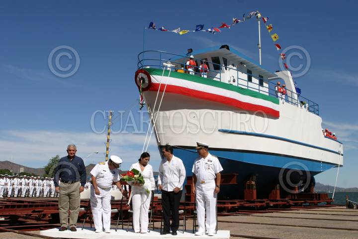 GUAYMAS, SONORA 29OCTUBRE2009.- Se realizó la botadura del buque de investigación pesquera construído por la Secretaría de marina en coordinación con la SAGARPA y CONAPESCA. FOTO: IVÁN STEPHENS/CUARTOSCURO.COM