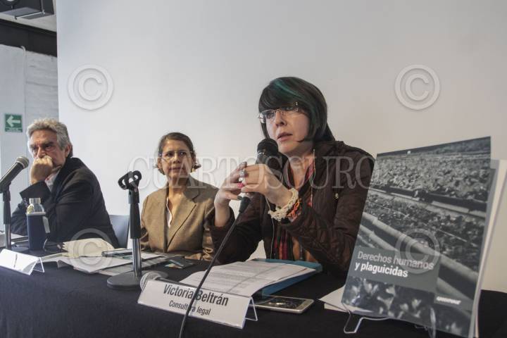 CIUDAD DE MÉXICO, 10JULIO2017.- Fernando Bejarano, director de la Red de Acción sobre Plaguicidas y sus Alternativas en México, María Colín, de Greenpeace, y la consultora legal Victoria Beltrán, presentaron el estudio “Derechos humanos y plaguicidas”, en el que exponen el uso de dichas sustancias en el país. FOTO: ISAAC ESQUIVEL /CUARTOSCURO.COM
