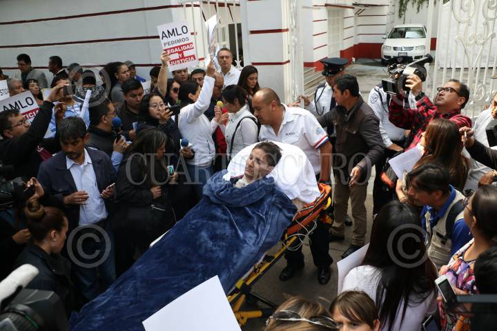 CIUDAD DE MÉXICO, 14AGOSTO2018.- Roberto Gonzalez, victima de una agresión por uno de sus vecinos y que lo dejo paraplegico por mas de 19 meses, acudió en camilla acompañado de su esposa e hijo a las afueras de la casa de transición de Andrés Manuel López Obrador para pedirle apoyo al prediente electo para enjuiciar al agresor que sigue en libertad. FOTO: SAÚL LÓPEZ /CUARTOSCURO.COM