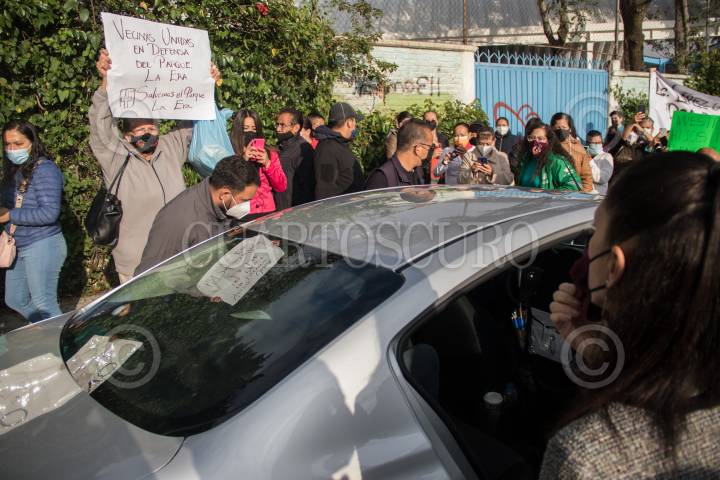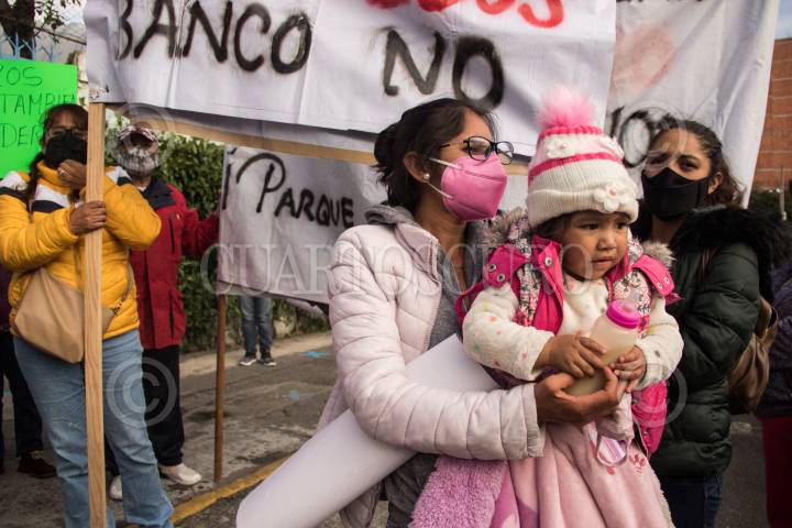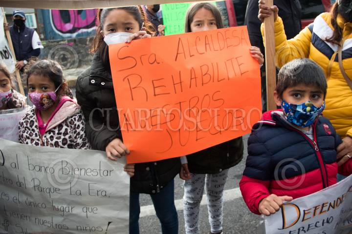 Habitantes de Lomas de la Era, se manifestaron en las afueras de la Escuela Primaria Zimbawe, donde la jefa del Gobierno tenia un evento.