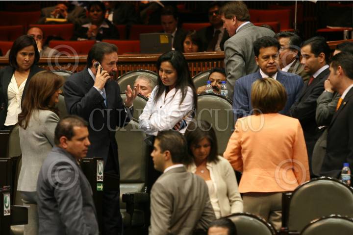 MÉXICO D.F. 25MARZO2008.-Sesión ordinaria en la Cámara de Diputados donde se realizaba el posicionamiento en relación al día de la expropiación petrolera.En la imagen los diputados Emilio Gamboa Patrón (PRI) y Ruth Zavaleta (PRD) dialogan durante la sesión. FOTO: GUILLERMO PEREA/CUARTOSCURO.COM