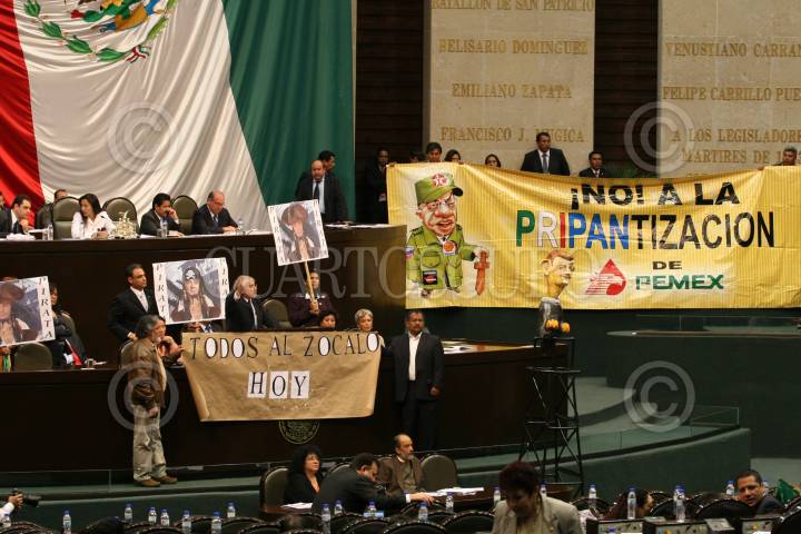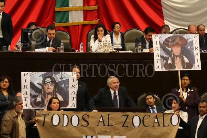 MÉXICO D.F. 25MARZO2008.-Diputados de la izquierda toman la tribuna durante la sesión donde se realizaba el posicionamiento en relación al día de la expropiación petrolera.En la imagen el diputado, Juan José Rodriguez Prats (PAN) al momento de tomara la palabra en la tribuna. FOTO: GUILLERMO PEREA/CUARTOSCURO.COM
