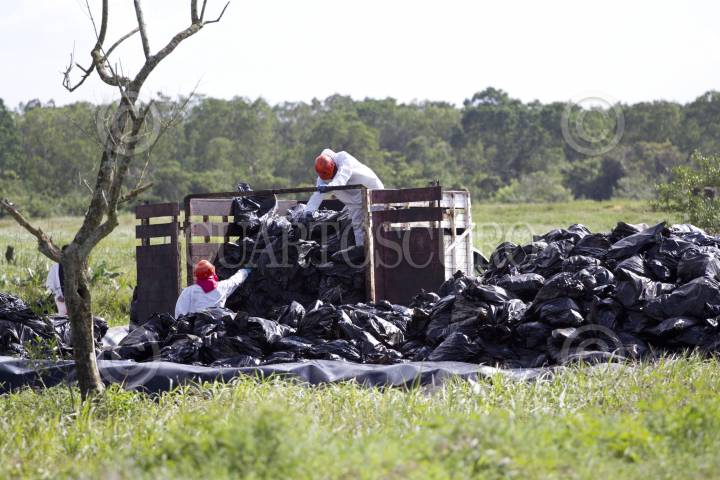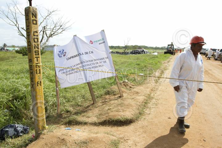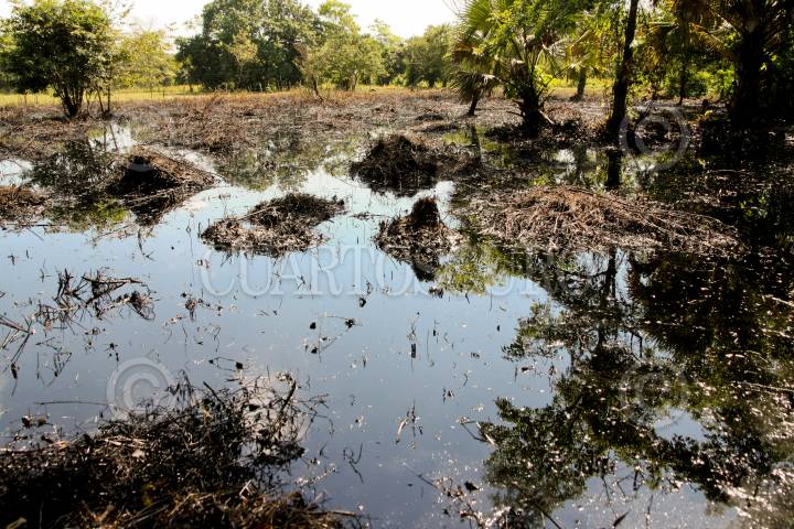 CUNDUACÁN, TABASCO, 10NOVIEMBRE2010.- Al menos dos hectáreas de pastizales ganadero, un arrollo y una docena de animales muertos es el saldo que dejó la fuga de petróleo crudo en las inmediaciones de las rancherías González segunda y cuarta sección. Según información proporcionada por Sebastiana Ruiz Díaz, delegada comunitaria detalla que aunque empleados de la paraestatal petrolera ya se encuentra realizando trabajos en el campo dañado, pero las afectaciones en la ecología de la zona son severos. FOTO: MARCO POLO GUZMÁN HERNÁNDEZ/CUARTOSCURO.COM