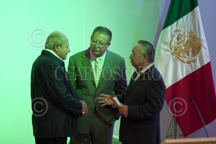 MÉXICO, D.F., 08OCTUBRE2011.- Carlos Romero Deschamps, líder del Sindicato Petrolero; el diputado Francisco Rojas y Isaías González Cuevas, dirigente nacional de la CROC durante el Consejo Político Nacional del Partido Revolucionario Institucional (PRI), en donde se aprobó que la elección del candidato presidencial sea directa y abierta a militantes y simpatizantes; este evento se realizo en la sede nacional del partido. FOTO: RODOLFO ANGULO/CUARTOSCURO.COM