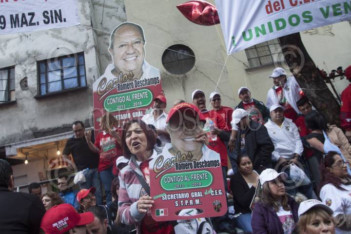 MÉXICO, D.F., 20OCTUBRE2012.- Cientos de trabajadores petroleros esperan afuera de su sede sindical luego que en el interior se realiza a puerta cerrada la 25 Convención Ordinaria del Sindicato de Trabajadores Petroleros de la República Mexicana la cual inició este sábado para reelegir al actual senador Carlos Romero Deschamps como líder del gremio por otros seis años quien es líder de ese sindicato desde 1997. FOTO: RODOLFO ANGULO /CUARTOSCURO.COM