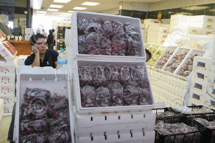 MÉXICO, D.F., 27DICIEMBRE2008.- Vendedores de frutas y legumbres de la Central de Abastos se preparan para la ultima gran venta de este 2008 ya que cientos de familias esperan el cierre de año para preparar la cena y festejar con sus familias el inicio del 2009, entre los productos mas buscados se encuentran las uvas, las cañas para el ponche, frutas de temporada y productos como limones cebollas y plátanos, estos alimentos se pueden conseguir a precios accesibles en la Central de Abastos. FOTO: RICARDO CASTELAN/CUARTOSCURO.COM