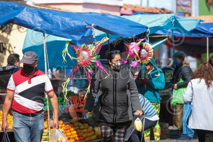 El mercado Jamaica se ha llenado de productos y materias primas para las fechas decembrinas, desde cubrebocas, noche buenas hasta luces y pinos naturales