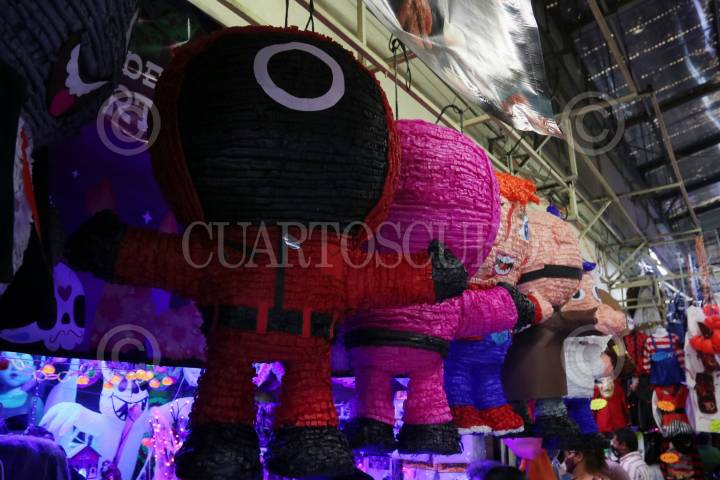 Piñata de la famosa serie Juego de Calamar en el Mercado Sonora previo al día de brujas según festejo originario en Estados Unidos