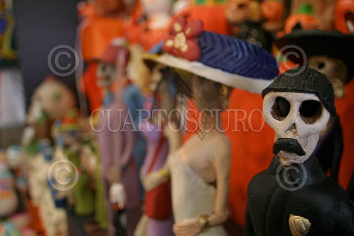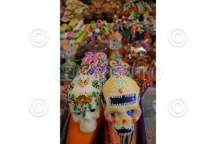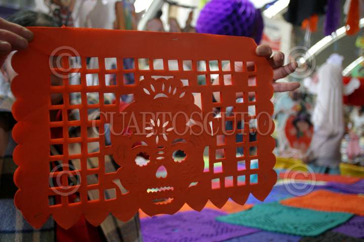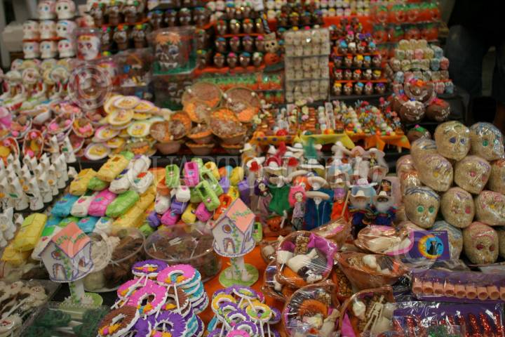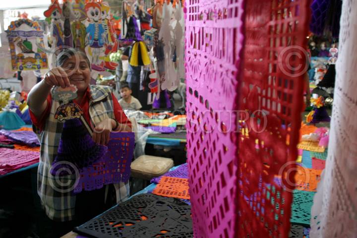 MEXICO, D.F. 22OCTUBRE2006.- En los diversos mercados de la ciudad se venden ya los elementos que conformaran las tradicones ofrendas de día de muertos, como el papel picado, os dulces de azucar y figuras de ceramica. FOTO: NELLY SALAS/CUARTOSCURO.COM