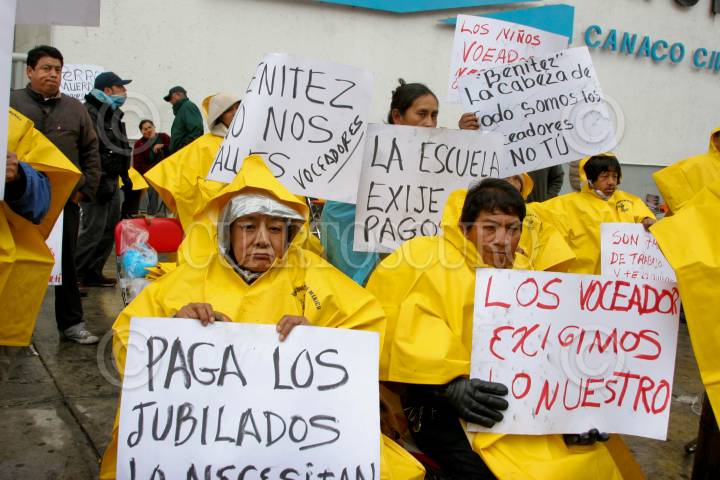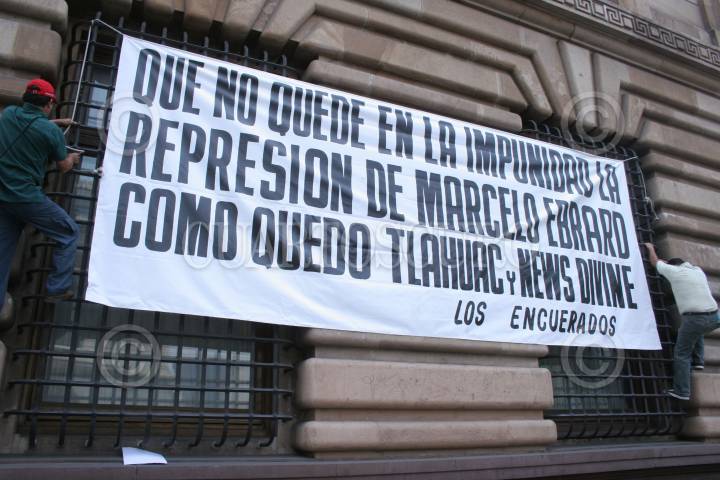 MÉXICO, D.F., 16ENERO2009.- Voceros unidos de México se manifestaron a las afueres de las oficinas centrales de esta organización pidiendo a su líder sindical Benitez pague los 7 meses de prestaciones que les deven. FOTO: RICARDO CASTELAN/CUARTOSCURO.COM