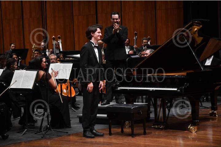 CIUDAD DE MÉXICO, 29SEPTIEMBRE2023.- Jesús Enrique García, pianista premiado por el décimo concurso nacional de piano "Angélica Morales-Yamaha 2022", e Ivan Lopez-Reynoso, director huésped, encabezaron la presentación de La Orquesta Sinfónica Nacional en el Palacio de Bellas Artes con motivo de su 89 aniversario. FOTO: MARIO JASSO/CUARTOSCURO.COM