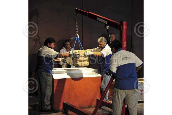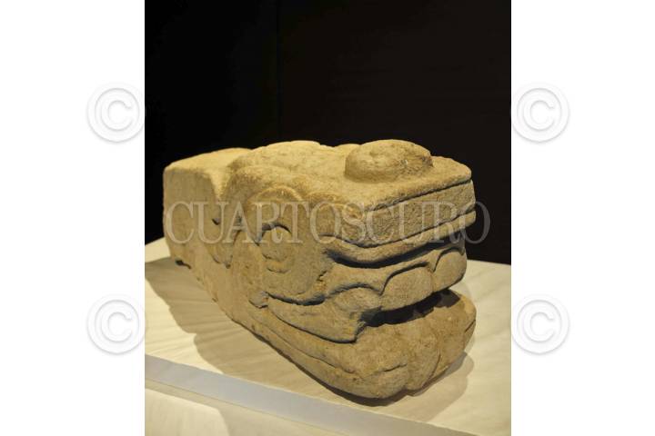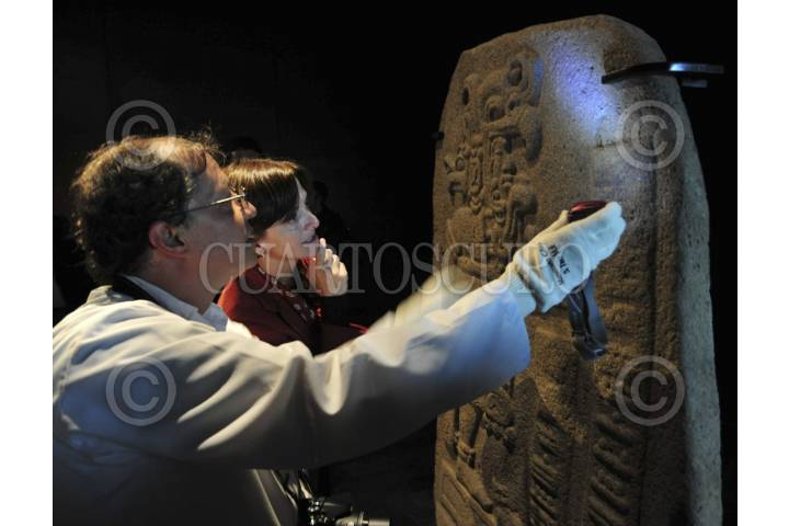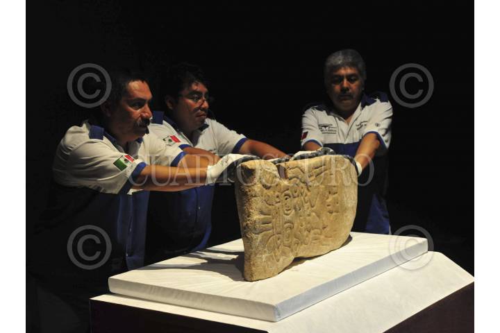 MÉXICO, D.F., 13SEPTIEMBRE2013.- En el Museo de Antropología se presentaron tres piezas de gran tamaño que habían sido saqueadas de México y fueron recuperadas. A través del Programa para Procurar la Recuperación de Bienes Culturales, en el que participan la Secretaría de Relaciones Exteriores, PGR, el INAH y el Instituto Nacional de Bellas Artes fueron recuperadas y serán exhibidas al público, las piezas se encontraban en el Mueos de Arte de Lowe, de la Universidad de Miami, a las que habían sido "donadas". Las obras prehispánicas son: Cabeza de Serpiente (900-1200 d.C), una pieza en forma de serpiente ligada con el poder y la tierra; Tláloc, dios de la lluvia (200-900 d.C.). estela que presenta las típicas anteojeras y cuernillos, y en la mano izquierda pareciera tener rayos, pieza que posiblemente sea originaria de la zona de Guerrero, y Noble o sacerdote (600-200 a.C.), que simboliza a un noble o un sacerdote ataviado con un tocado, que presenta sandalias a un noble o aun sacerdote ataviado con un tocado, que presenta sandalias y pulseras, y que se encuentra parado un elemento que representa un cerro; de acuerdo con los primeros estudios, procede de la costa de Golfo de México. FOTO: INAH/ HÉCTOR MONTAÑO /CUARTOSCURO.COM