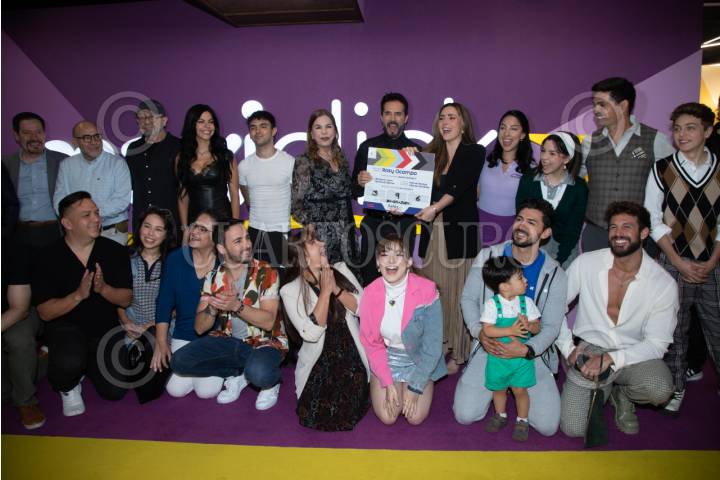 CIUDAD DE MÉXICO, 24ABRIL2024. Elenco durante el tlaquetazo por inicio de grabaciones de la telenovela "Papás por conveniencia", en Santa Fe. FOTO: EDGAR NEGRETE LIRA/CUARTOSCURO.COM