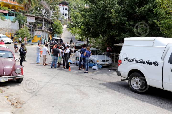 ACAPULCO, GUERRERO, 17ABRIL2016.- Diez personas fueron asesinadas en hechos distintos este domingo en Acapulco, seis de ellas relacionadas con el transporte público. Durante la mañana, cinco personas murieron por impactos de bala en un ataque a un sitio de taxis de la colonia Alto Icacos, el cual ocurrió alrededor de las 11 horas. De acuerdo a reportes en el lugar se efectuaba una asamblea de taxistas. En la agresión murieron de forma instantánea tres chóferes y una mujer, que fue identificada como dueña de un taxi. A pocos metros del sitio murió un quinto hombre. Una persona más resultó herida en el ataque. FOTO: BERNANDINO HERNÁNDEZ /CUARTOSCURO.COM