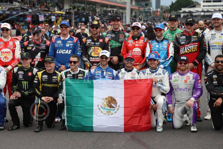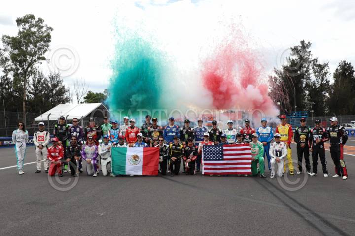 CIUDAD DE MÉXICO, 15JUNIO2025.- Los pilotos de Nascar que competirán este domingo posaron para las cámaras previo al inicio de la carrera en el Autódromo Hermanos Rodríguez. FOTO: DANIEL AUGUSTO/ CUARTOSCURO.COM