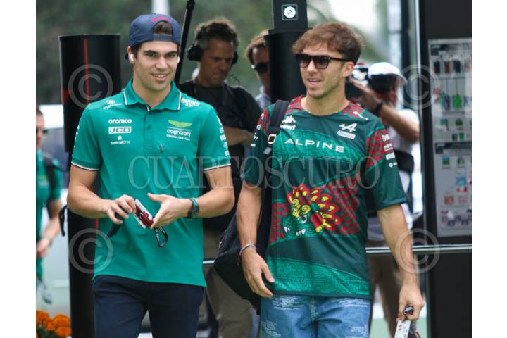 CIUDAD DE MÉXICO, 27OCTUBRE2023.- Los pilotos Lance Stroll y Pierre Gasly llega al Autódromo Hermanos Rodríguez, en donde ya se encuentra todo listo para el Gran Premio de la Ciudad de México. FOTO: MOISÉS PABLO/CUARTOSCURO.COM