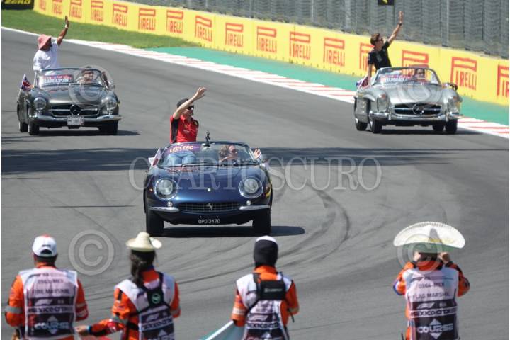 CIUDAD DE MÉXICO, 29OCTUBRE2023.- Lewis Hamilton (Mercedes) desfila por el circuito del Autódromo Hermanos Rodríguez, previo a disputa el Gran Premio de la Ciudad de México de la Fórmula 1.  FOTO: GALO CAÑAS/CUARTOSCURO.COM