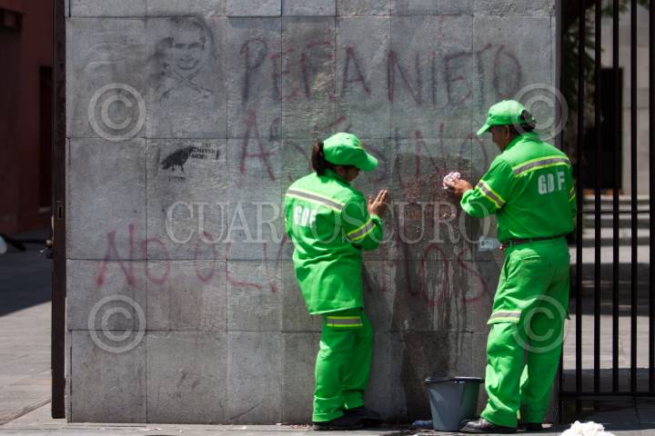 MÉXICO, D.F., 01AGOSTO2012.- Trabajadores del Gobierno del DF despintan una barda de un edificio en avenida Juárez, en los próximos días se espera se inauguren las obras de remodelación de esta vialidad. FOTO: MOISÉS PABLO /CUARTOSCURO.COM