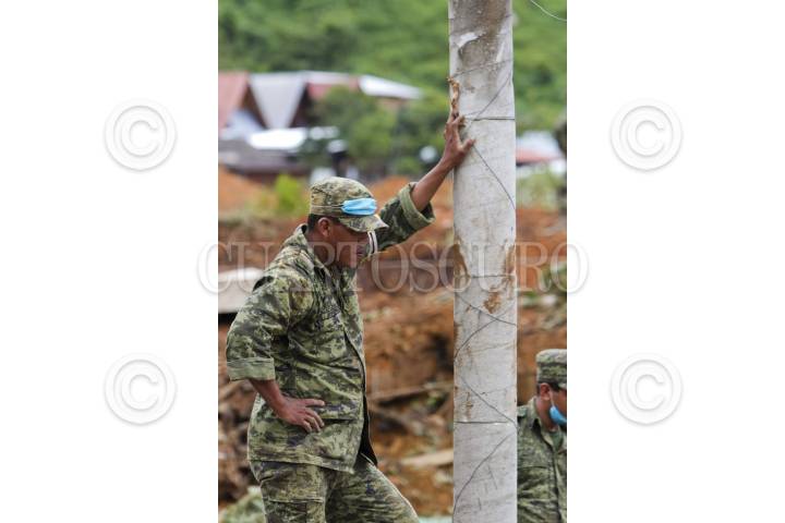 LA PINTADA, GUERRERO., 21SEPTIEMBRE2013.- Elementos del Ejercito dan apoyo a los habitantes de la zonas cercanas y hacentrabajos de remosción de escombros donde comenzaron aparecer los cuerpos de las victimas, tras el alud provocado por las intensas lluvias provocadas por la tormenta Manuel. FOTO: GUILLERMO PEREA /CUARTOSCURO.COM