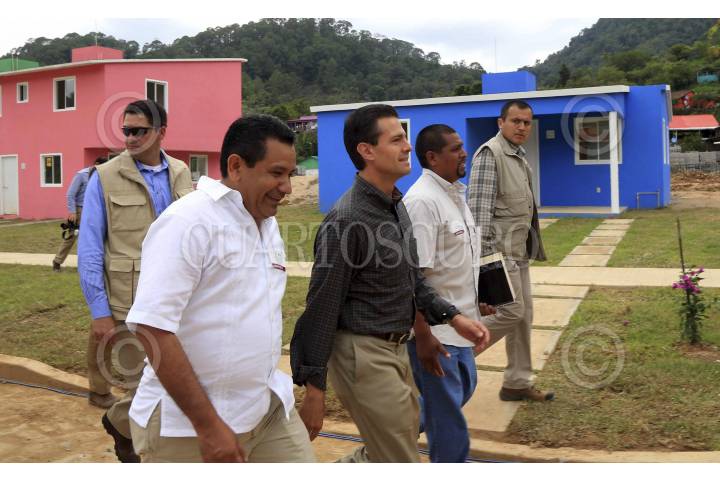 LA PINTADA, GUERRERO., 26MAYO2014.- Enrique Peña Nieto, Presidente de México, encabezo la entrega de viviendas en esta comunidad, que fue afectada por paso del huracán “Manuel” lo que provoco el deslave de un cerro que afecto gran parte de este poblado. FOTO: ESPECIAL /CUARTOSCURO.COM