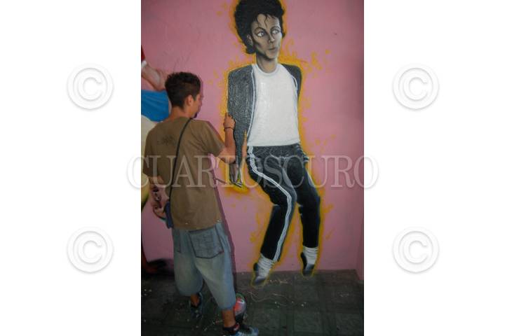 ACAPULCO, GUERRERO, 05AGOSTO2009.- Jóvenes de Acapulco plasman en una pared al rey del Pop Michael Jackson. FOTO: MARINO D. VALDEZ/CUARTOSCURO.COM