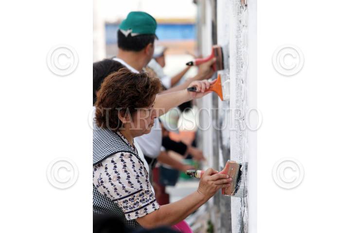 MÉXICO, D.F. 04JUNIO2005.- Vecinos de la delegación Magdalena Contreras pintan la barda de la primaria Profesora Guadalupe Flores Alonso como parte del programa "Comunidades sin grafiti" encabezado por la SSP-DF FOTO: Miguel Dimayuga Meneses/CUARTOSCURO.COM