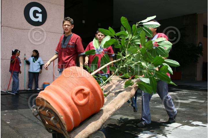 MÉXICO, D.F., 24AGOSTO2007. A unos cuantos días del primer informe de Gobierno de Felipe Calderón Presidente de México, trabajadores de limpieza cambian las plantas de la Cámara de Diputados. FOTO:SASHENKA GUTIERREZ/CUARTOSCURO.COM