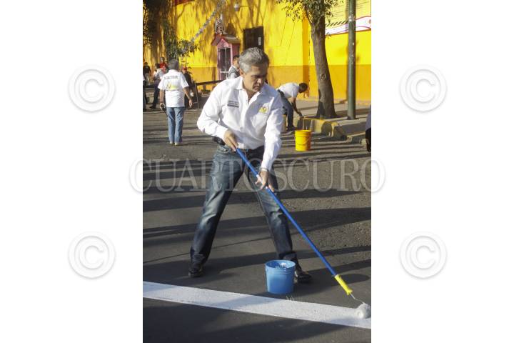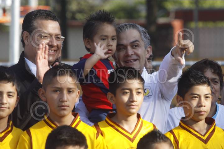 MÉXICO, D.F., 12ABRIL2014.- Miguel Ángel Mancera, Jefe de Gobierno, encabezó una jornada de "Tu Ciudad te Re-Quiere", esta vez la cita fue en el deportivo ubicado en avenida Amacuzac esquina Jesús Urueta, en el Barrio de San Pedro de la delegación Iztacalaco. Lo acompañaron en esta actividad de remozamiento y rescate de los espacios públicos la delegada Elizabeth Mateos y José Ramón Amieva Gálvez, Consejero Jurídico y de Servicios Legales. FOTO: MOISÉS PABLO /CUARTOSCURO.COM