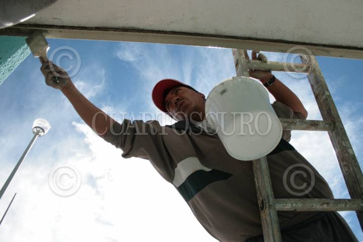 OAXACA, OAXACA 04 DE DICIEMBRE 2006.- En el centro de la ciudad, hay trabajadores pintando y limpiando el primer cuadro de la ciudad. FOTO: MAX NUÑEZ/CUARTOSCURO.COM