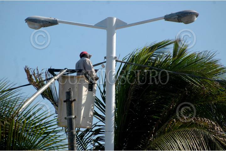 VERACRUZ,VER. 07ENERO2008.- Después de cuatro administraciones y trece años de hegemonÌa panista. El actual gobierno municipal de extracción priista mando pintar todos los postes del alumbrado publico, anteriormente azules por color blanco. FOTO: JOSÉ CANDELARIO/CUARTOSCURO.COM