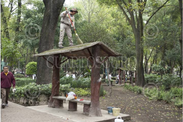 MÉXICO, D.F., 19OCTUBRE2013.- Se inició la jornada de limpieza y de rehabilitación del Parque México, que consiste en barren andadores, pintan guarniciones, reparación de luminarias, entre otras actividades. Se tiene programado que a finales de este mes iniciarán las obras para renovar el escenario del Foro Lindbergh, para realizar todas las actividades se destinarán seis millones de pesos. FOTO: MITZI BLANQUET /CUARTOCURO.COM