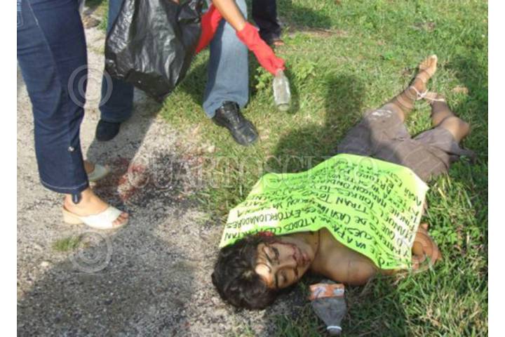 ACAPULCO, GUERRERO 18OCTUBRE2009.- Este Domingo se pinto de sangre al encrontrar sin vida y acompañados por narcomensajes 5 cuerpos en diferentes lugures de la capital guerrerense. FOTO: BERNANDINO HERNANDEZ/CUARTOSCURO.COM