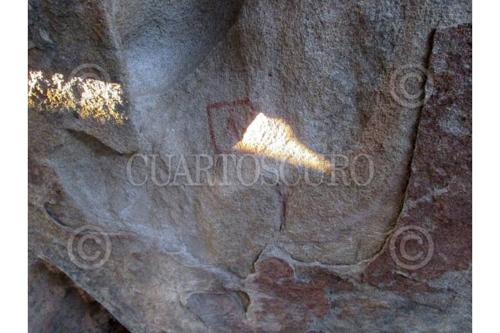 EL VALLECITO, BAJA CALIFORNIA, 21ENERO2016.- Tras casi un año de observaciones y minuciosas mediciones de la posición del sol, investigadores del Instituto Nacional de Antropología e Historia (INAH) identificaron un fenómeno arqueoastronómico que ocurre durante el equinoccio de otoño y el solsticio de invierno en el resguardo de pintura rupestre “El Hombre en el Cuadro” del sitio arqueológico El Vallecito, en el estado de Baja California. Durante el solsticio de invierno (en 2015 ocurrió el 21 de diciembre), aproximadamente a las 15:30 horas el sol pega en el abrigo rocoso, y una punta de luz comienza a subir hacia la pintura, cuyo sencillo diseño consiste en el trazo delgado de color rojo de un cuadrado con la figura de un hombre en su centro. De ahí en adelante, la luz toca la línea perimetral inferior del cuadro y avanza hacia la mano izquierda de la imagen antropomorfa. Poco antes de las 16:00 horas, la punta de luz alcanza la línea perimetral derecha del cuadrado para convertirse en un triángulo luminoso irregular que acapara mano, tibia y pie izquierdos, así como la línea derecha inferior del marco. Minutos después, el triángulo semeja una punta de proyectil y posteriormente disminuye y desaparece. FOTO: INAH /CUARTOSCURO.COM