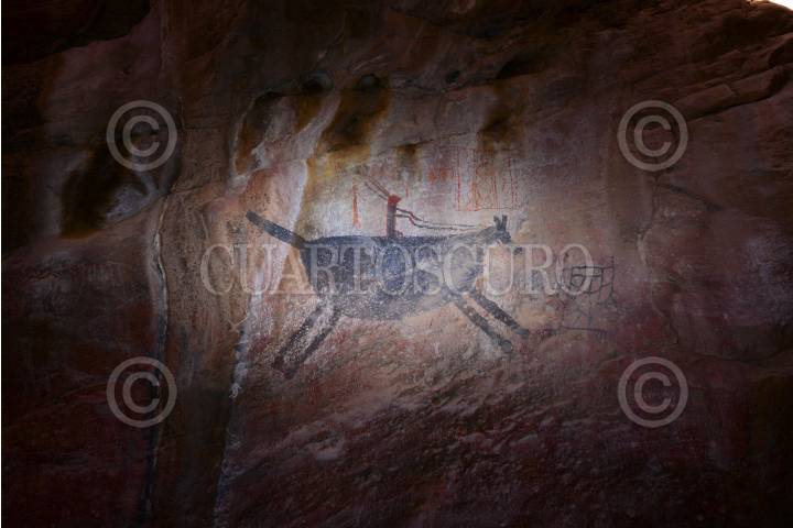 MULEGÉ, BAJA CALIFORNIA SUR, 13ENERO2016.- A 250 metros de altura sobre una afluente fértil del arroyo intermitente de San Baltasar se abre la gran boca pintada de la Cueva de San Borjitas: en su interior se halla una de las policromías más ricas de la tradición Gran Mural. Posiblemente sea uno de los sitios donde comenzó a desarrollarse ese estilo de pintura rupestre monumental en Baja California Sur, inscrito en la Lista de Patrimonio Mundial en diciembre de 1993. FOTO: INAH /CUARTOSCURO.COM