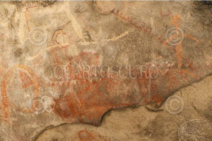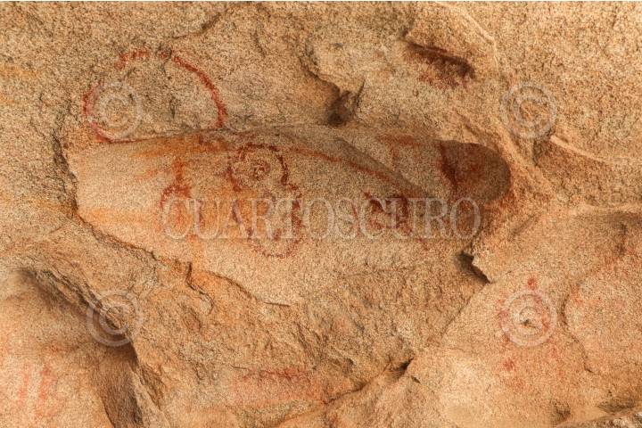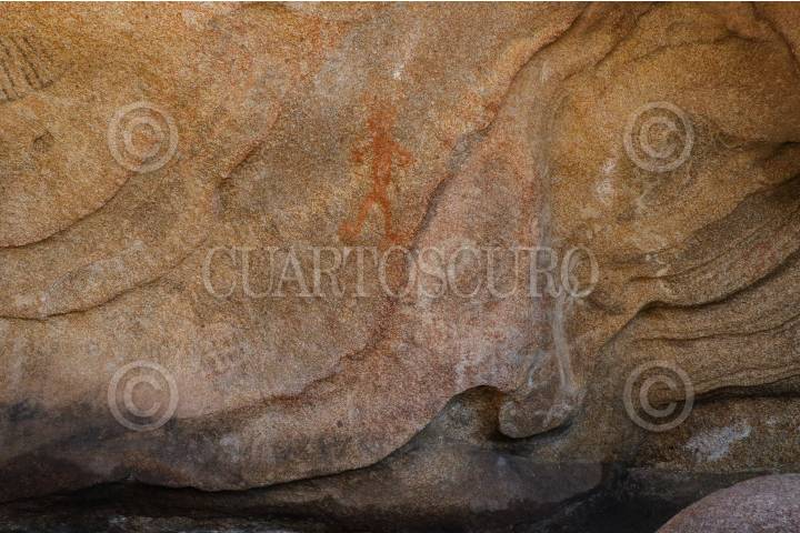 TECATE, BAJA CALIFORNIA, 21DICIEMBRE2023.- En los abrigos rocosos de la Sierra de Juárez, existe una amplia muestra de pintura rupestre. Figuras geométricas, zoomorfas o antropomorfas aparecen en los muros. El conjunto El Diablito se le considera uno de los conjuntos más importantes. En el solsticio de invierno, 21 de diciembre, un rayo de luz solar penetra al resguardo por la mañana y toca directamente los ojos de la figura humana pintada de rojo, conocida como "El Diablito". Esta implicación astronómica muestra el grado de conocimiento que los antiguos pobladores tenían sobre los fenómenos naturales y quizá marcaba algún acontecimiento calendárico ritual. El resguardo El Diablito debe su nombre a un personaje humano de cuerpo entero plasmado en color rojo, sobre cuya cabeza se agregaron dos cuernos que lo hacen lucir como tal. De ahí que durante décadas se le haya conocido popularmente con ese nombre. Sin embargo, las últimas investigaciones la figura en realidad representa a un cazador con una cabeza de venado como tocado. La cornamenta representada es característica de los venados conocidos como “alesnillos”, ejemplares con astas de un solo pico y endemicos de la región. Los venados se acercan y son visibles al interior de El Vallecito de octubre a diciembre. Su presencia ahí termina precisamente cuando comienzan las nevadas, con el solsticio de invierno, fenómeno marcado astronómicamente cada año en El Diablito. Por ello, la importancia para los pobladores kumiai. FOTO: ADOLFO VLADIMIR /CUARTOSCURO.COM