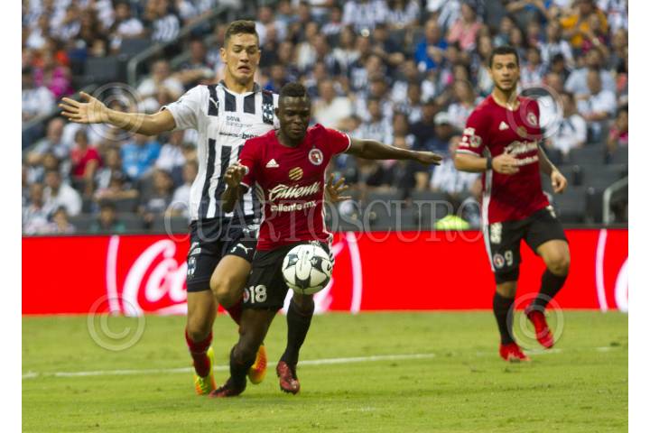 MONTERREY, NUEVO LEÓN, 10SEPTIEMBRE2016.- César Montes del equipo de los Rayados del Monterrey se disputa el balón con Avilés Hurtado de equipo de los Xolos de Tijuana, en el estadio BBVA Bancomer, partido correspondiente a la jornada 8 de la Liga MX. FOTO: GABRIELA PÉREZ MONTIEL /CUARTOSCURO.COM