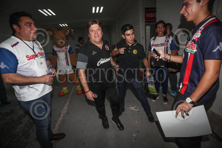 HERMOSILLO, SONORA, 02JULIO2016.- Serrvando Carbajal dueño de cimarrones y Miguel Herrera , durante el partido amistoso entre Club Tijuana Xoloitzcuintles vs CimarronesFc previo el inicio del torneo apertura de la liga Mx y Liga de Ascenso MX en estadio Heroè de Nacozari. Hermosillo Sonora a 2 de jul 2016. FOTO: LUIS GUTIÉRREZ /CUARTOSCURO. COM