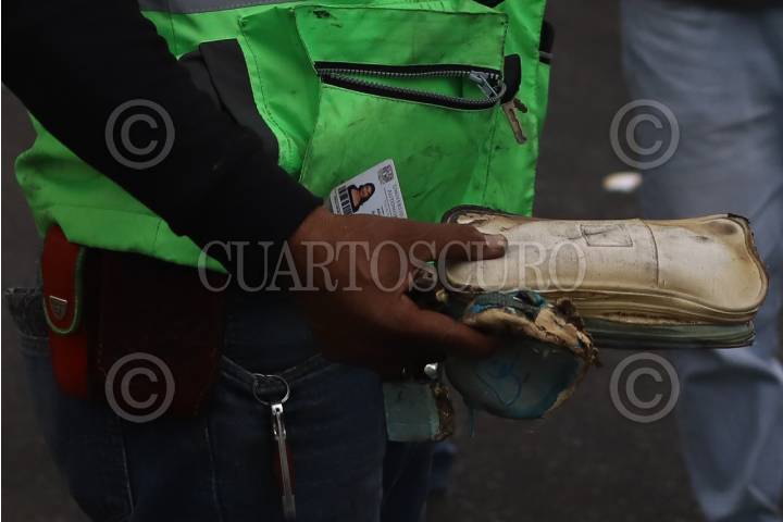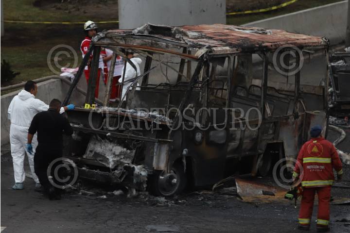 CIUDAD DE MÉXICO, 10SEPTIEMBRE2025.- Peritos de la FGJCDMX revisan uno de los vehículos que quedaron calcinados luego de la volcadura de una pipa de gas. FOTO: DANIEL AUGUSTO/ CUARTOSCURO.COM