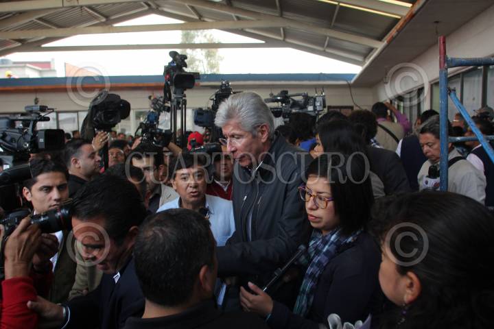 ECATEPEC, ESTADO DE MÉXICO, 10MAYO2013.- Gerardo Ruiz Esparza, Secretario de Comunicaciones y Trasnportes acompañado del gobernador Eruviel Ávila Villegas, durante la reunión con vecinos afectados por la explosión de una pipa de gas del pasado Lunes en la colonia San Pedro Xalostoc. FOTO: SAÚL LÓPEZ /CUARTOSCURO.COM